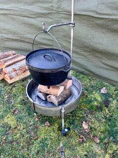 For Outdoor Cooking the Fire Pit 35 Cook Station is a heavy-duty cooking system, designed to be portable as a Fire Pit but that can then be used for cooking by attaching the main anchor pole and adding the grill, skillet and hook arm. The cook system will then easily come apart for easy storage.